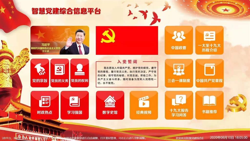 傳統(tǒng)的黨建宣傳工作主要靠墻上畫(huà)標(biāo)語(yǔ),掛橫幅,再加組織部宣傳欄方式。隨著科技快速發(fā)展,傳統(tǒng)黨建宣傳繁瑣且不具像化的方式已難以適用于現(xiàn)代社會(huì)。黨建宣傳教育作為黨建工作的重要一環(huán),宣傳載體也需隨著社會(huì)和科技發(fā)展推陳出新,充分結(jié)合信息技術(shù)優(yōu)勢(shì),利用各式網(wǎng)絡(luò)平臺(tái)開(kāi)展工作。“智慧黨建多點(diǎn)查詢(xún)系統(tǒng)”為全國(guó)黨員干部提供沉浸式、不受場(chǎng)地限制與內(nèi)容豐富的優(yōu)質(zhì)學(xué)習(xí)體驗(yàn),可運(yùn)用在各個(gè)單位的黨建活動(dòng)中心、各類(lèi)教育基地以及各類(lèi)展館。