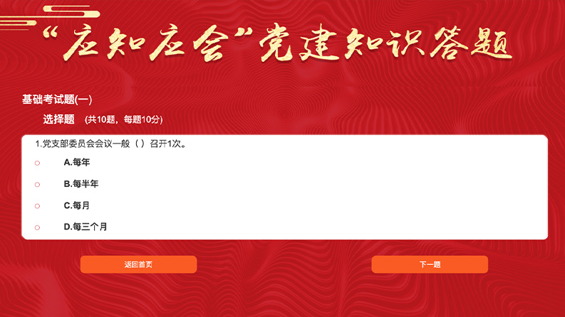 定制軟件,內(nèi)容題庫類型如:應知應會,十九大報告等相關(guān)題庫。智慧答題系統(tǒng)提供答題服務(wù),黨員群眾通過答題來選擇正確的選項。軟件功能: