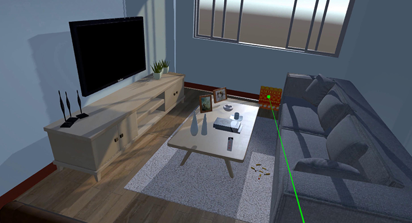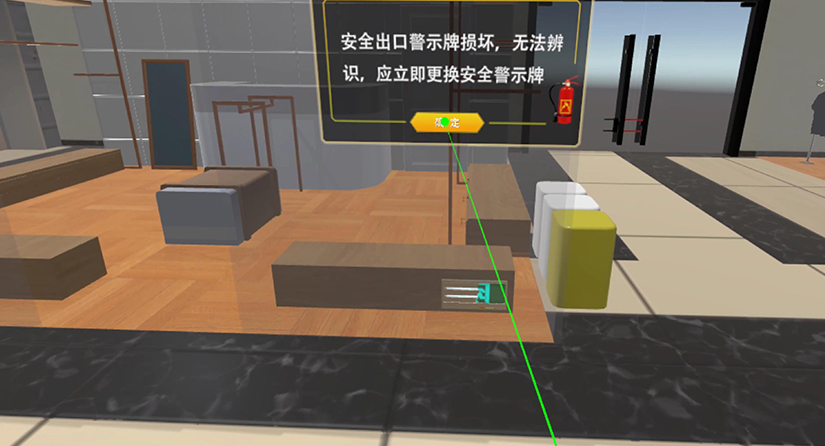 體驗(yàn)人員在90平方的房子中,體驗(yàn)人員可以在廚房、客廳、臥室移動(dòng),三個(gè)房屋空間中存在許多消防隱患,體驗(yàn)者需要一一指出。