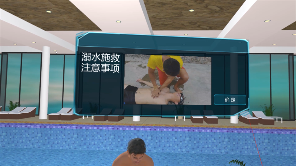 VR溺水救援教育體驗是基于現(xiàn)實生活中的溺水場景進行還原,體驗者以第一視覺的沉浸體驗,在虛擬場景中學(xué)習(xí)遇到人員意外溺水后,我們作為施救者,應(yīng)如何應(yīng)對,如何采取有效措,如何施救,如何進行心肺復(fù)蘇操作、如何自救等內(nèi)容。