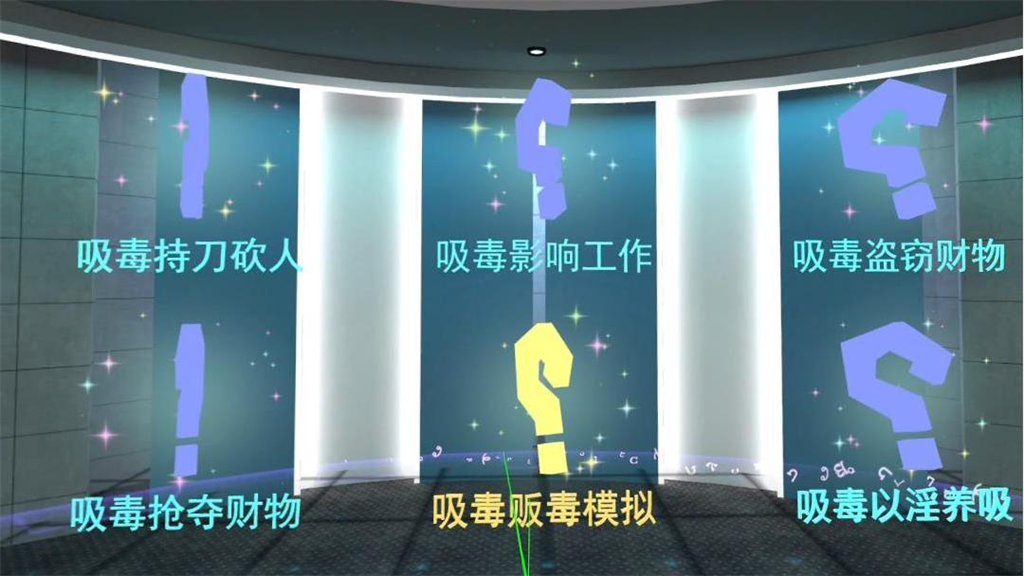 通過虛擬現(xiàn)實技術(shù),感受吸毒者實施的6大危害社會公共安全的行為。包括毒品交易、喪失勞動能力、盜竊財物、搶奪財物、殺砍人、以淫養(yǎng)吸,讓體驗者仿佛置身于事件現(xiàn)場,感受其帶來的恐怖和危害。
