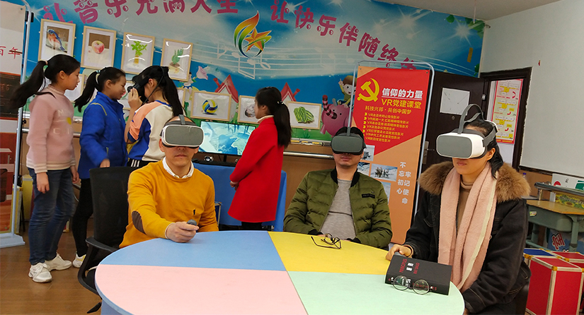 VR黨建課堂讓同學(xué)們置身井岡山、南湖紅船、延安等紅色革命圣地,接受紅色革命精神的洗禮和照拂;再現(xiàn)紅軍長征和中共中央的光輝發(fā)展史,激發(fā)同學(xué)們的愛國主義熱情,在愛國教育的光輝旗幟引領(lǐng)下刻苦學(xué)習(xí)、奮發(fā)成才,老師們也興致勃勃參與體驗,打造最“紅”校園文化。