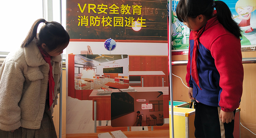 VR實訓(xùn)教學(xué)包括少年兒童交通安全VR沉浸式互動體驗和VR消防校園逃生體驗等多個內(nèi)容,為建立平安和諧校園撐起“保護(hù)傘”。