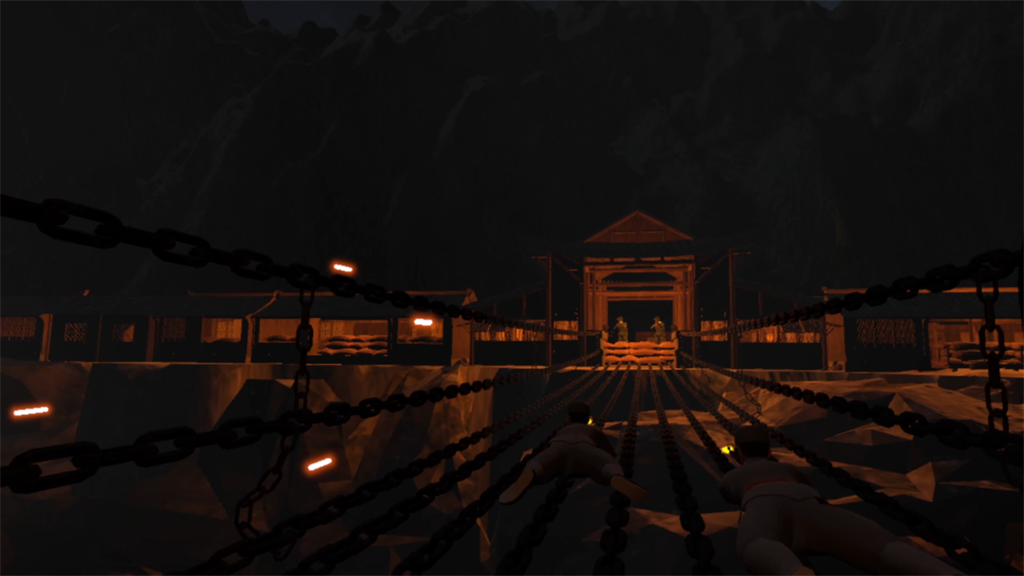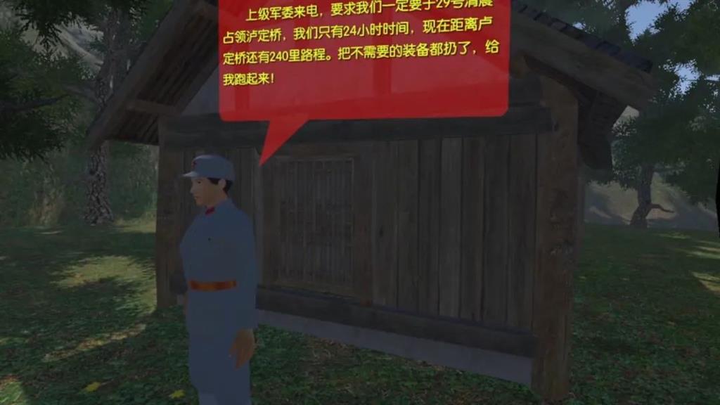 在VR飛奪瀘定橋體驗系統(tǒng)2.0中,體驗者載上VR眼鏡,穿越到1935年5月29日的那天夜晚,眼前便是瀘定橋,橋面腳下是鎖鏈森森,江水濤濤,稍有不慎就會遇險落水。環(huán)顧四周,戰(zhàn)友們在槍林彈雨中努力前進。拿起手彈,用力一擲,手榴彈便在敵方陣中應聲爆炸,熱血澎湃的你恨不得射光所有的子彈,將敵人全部消滅,但是夜色昏暗,橋面不穩(wěn),沒有遮擋,你和戰(zhàn)友們只能抓緊鎖鏈,躲避子彈,緩慢前進。