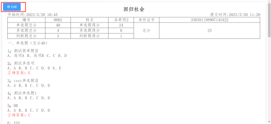 管理人員可以對(duì)考試結(jié)果進(jìn)行打印。
