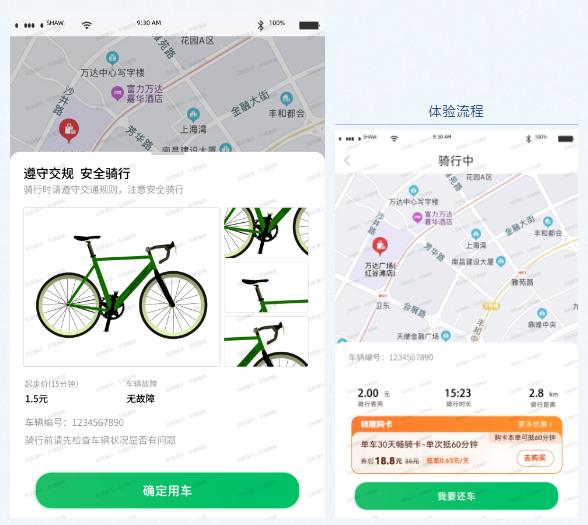 真實(shí)還原生活中的共享單車。通過平板電腦上的單機(jī)版共享單車APP,掃碼開鎖,開鎖配有語音提示和教學(xué)教程;還車時(shí),一鍵點(diǎn)擊關(guān)閉車鎖,系統(tǒng)便會(huì)提示“還車成功”。整個(gè)軟件采用藍(lán)牙技術(shù)開鎖關(guān)鎖,確保信息安全。