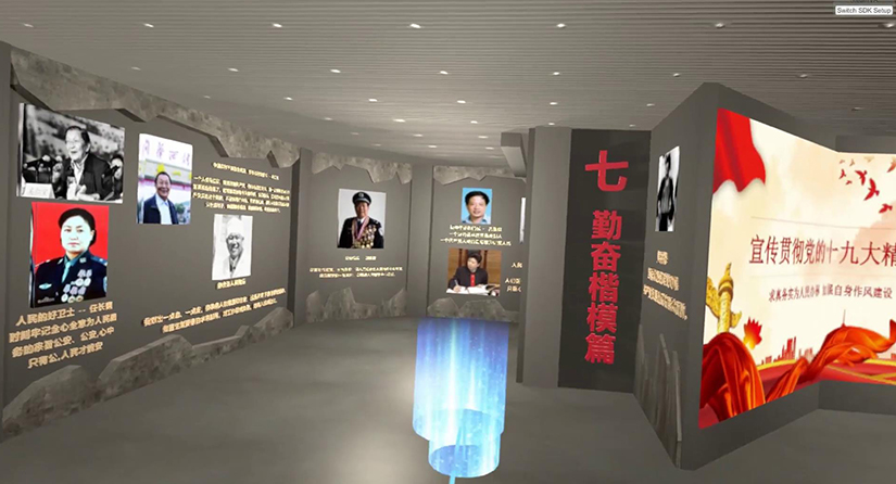 本次項目配備了一臺VR互動設(shè)備、7臺VR一體機設(shè)備,內(nèi)容涵蓋了VR長征爬雪山互動、VR過草地互動、新中國成立70周年成就館、VR廉政館、VR黨史館等一系列經(jīng)典黨建體驗內(nèi)容。