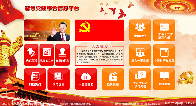 在雙屏多媒體查閱設(shè)備上,可以查閱黨的輝煌歷程、黨的重大事跡、互動(dòng)搶答、紅色電影、紅色書(shū)籍、學(xué)習(xí)強(qiáng)國(guó)、時(shí)政熱議、入黨誓詞、三會(huì)一課制度等相關(guān)內(nèi)容。